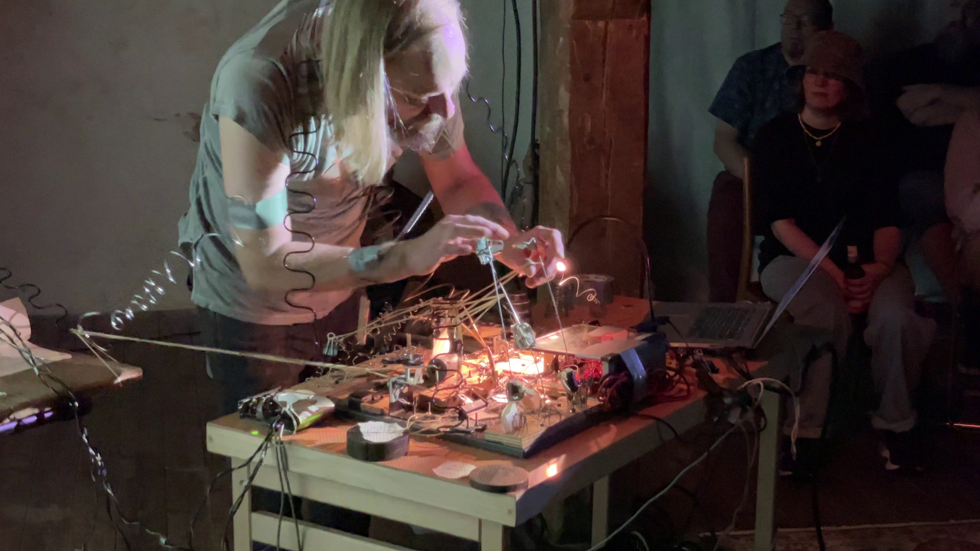 Water is a Dancer (2023) was a temporary installation created in Großharthau Castle Park during a residency in Großharthau, Germany. The work consists of a structure over which water flows. By placing metal wire at different points in the water’s flow, I extract values that I convert into sound through software that I have programmed. I translate the rhythm of the water into sound. One interacts with the work by changing the flow of water with their hands, thus controlling the sound landscape. The technique I have developed, using the water’s electrical resistance to translate movements in water into sound, is also employed in a work that will be temporarily installed and prototyped in connection to a public indoor swimming pool. In that case, interaction will occur by raising and lowering the water level at various points in a sculpture. Using your hands in combination with water to control sound is a very interesting experience just in itself and I think there is much to explore here. I see significant potential in this setup, and I believe there are excellent opportunities to address themes related to the environment, climate, human, and technology in the upcoming works.
